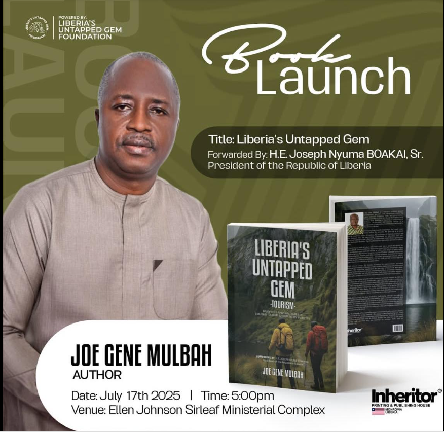 Monrovia, Liberia – President Joseph Nyuma Boakai on Thursday, July 17, 2025, officially launched a comprehensive book on Liberian tourism, titled “Liberia’s Untapped Gem: Tourism – Prospects and Challenges of the Liberia’s tourism and hospitality industry.” Authored by accomplished architect and eco-tourism professional Mr. Joe Gene Mulbah, the launch took place at the EJS Ministerial Complex in Congo Town, Monrovia, where the President lauded the effort and underscored the nation’s vast tourism potential.